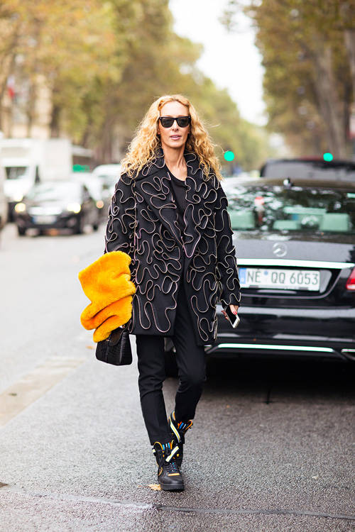 NO.10:打破傳統(tǒng)前衛(wèi)當(dāng)?shù)?/strong> 有多復(fù)古就可以有多前衛(wèi),立體拉鏈裝飾的大衣看起來甚是時髦,蜿蜒的紋路有了立體的質(zhì)感,沖破色彩局限的橘黃色皮草圍巾,彩色運動板鞋,都將潮女氣質(zhì)娓娓道來。 寒冷的冬季自然少不了御寒保暖的大衣,利用巧妙的搭配法可以讓你溫度風(fēng)度兩兼得,可以暖暖地美成一道閃電,你不心動嗎?
