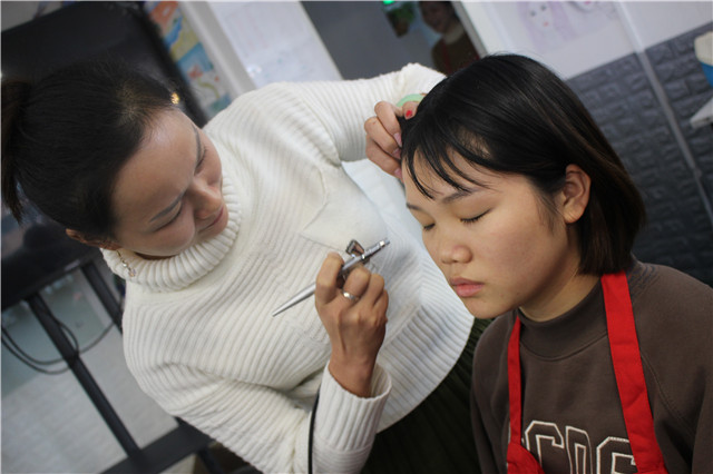而樂清陽洋化妝培訓(xùn)學(xué)校國際化妝精英班就開設(shè) ——高清噴槍化妝課程。