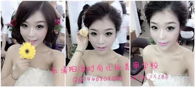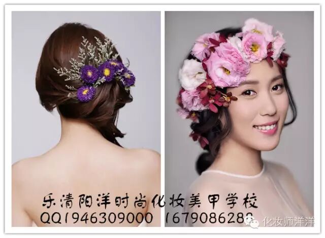 唯美的童話式婚禮是每個女生最期盼的婚禮形式。在夢幻般的婚禮上,新娘發(fā)型也是起到關鍵的作用的哦!可以說一個好的新娘發(fā)型能為即將到來的幸福討個好彩頭。鮮花是新娘造型中非常受歡迎的飾品,展現新娘的嫵媚嬌柔的同時營造浪漫幸福的氛圍。但如何擺脫傳統(tǒng)俗套的新娘造型就要融入與時代相呼應的時尚元素。今天為大家?guī)砹藥卓?/span>樂清陽洋時尚化妝學校美甲學校學生的鮮花的新娘發(fā)型作品! 新娘全程跟妝活動來啦!! 原價2080元,活動價1580,包括兩套服裝造型設計、全程跟隨補妝,免費使用仿真睫毛,送媽媽妝一個) 新娘早妝:580元(白紗妝面造型設計、送仿真睫毛一對) 訂婚妝:380元(一套妝面造型設計、送仿真睫毛一對)】