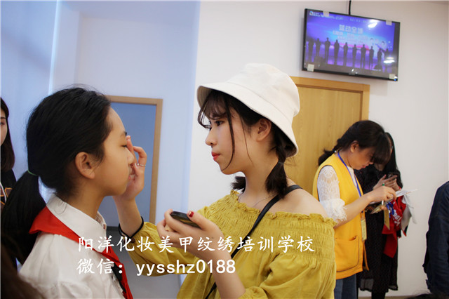 樂清陽洋時尚化妝美甲紋繡職業(yè)技能培訓學校 在百忙之中抽出寶貴的時間趕到現(xiàn)場做義工 免費給整場活動提供化妝,去的全部都是陽洋學校的老師和高級班的化妝師