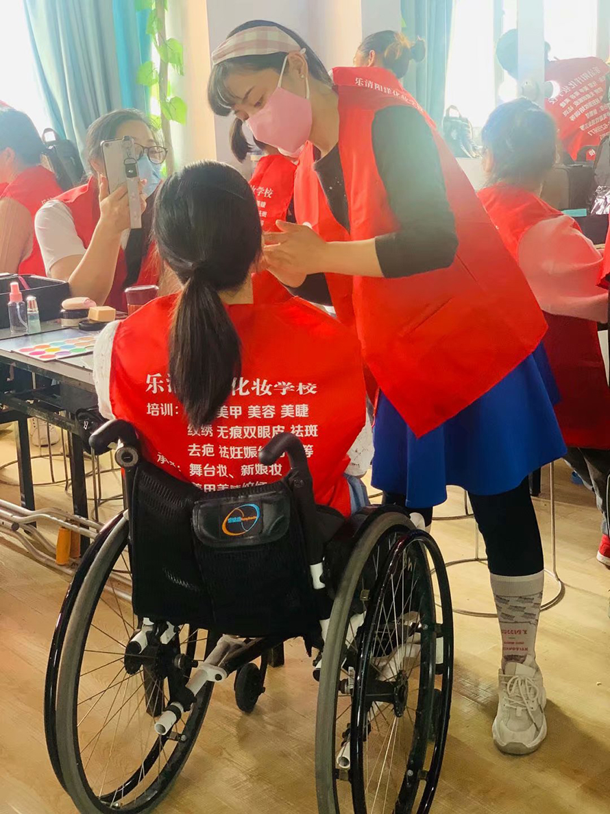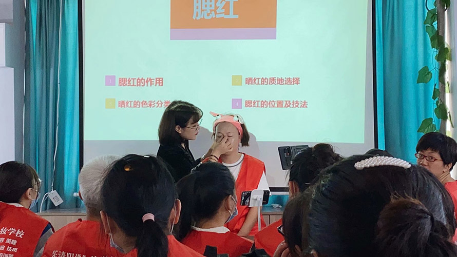 陽洋化妝學(xué)校是樂清 一家獲得政府審批的正規(guī)化妝培訓(xùn)學(xué)校, 至成立以來一致致力于公益事業(yè),秉持著回饋社會的初心,不斷參加公益活動, 0費(fèi)用幫助更多殘障人士跟貧困家庭獲得學(xué)習(xí)機(jī)會,了解她們的需求 ,用實(shí)際行動成為業(yè)界內(nèi)的典范表率。 在樂清政府的牽線中,我們順利開展了一場殘聯(lián)公益教學(xué),楊娜娜校長親自帶領(lǐng)專業(yè)團(tuán)隊(duì), 用有趣的課程讓學(xué)生了解化妝的力量,在陽洋化妝學(xué)校專業(yè)培訓(xùn)老師的講解下, 學(xué)員們逐漸明白如何化妝的重要性,也懂得了如何恰到好處的給自己化妝。