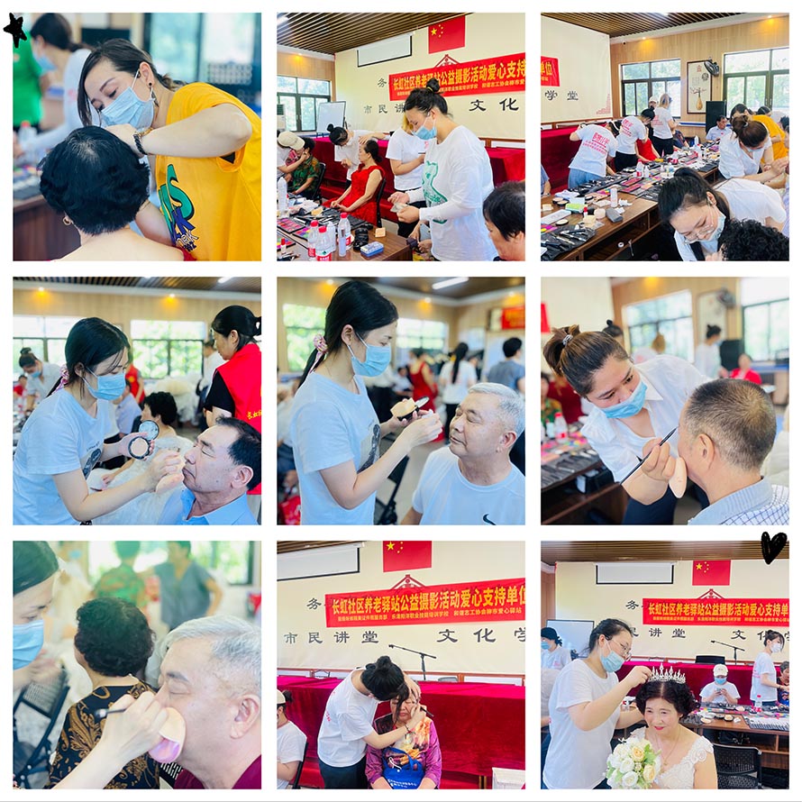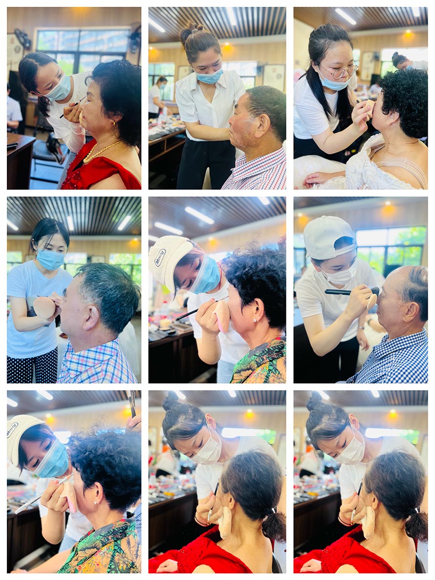 不僅能圓了老人們的婚紗夢(mèng),同時(shí)也有助于促進(jìn)家庭與社會(huì)的和諧與穩(wěn)定,鐫刻相濡以沫、相親相愛(ài)、攜手相伴走人生的金婚銀婚夫婦風(fēng)采,營(yíng)造尊老敬老的社會(huì)風(fēng)尚。 樂(lè)清陽(yáng)洋職業(yè)技能學(xué)校的化妝師們,一大早都開(kāi)始忙碌起來(lái),為今天我們的化妝師為第一次拍婚紗照的老人們化妝。