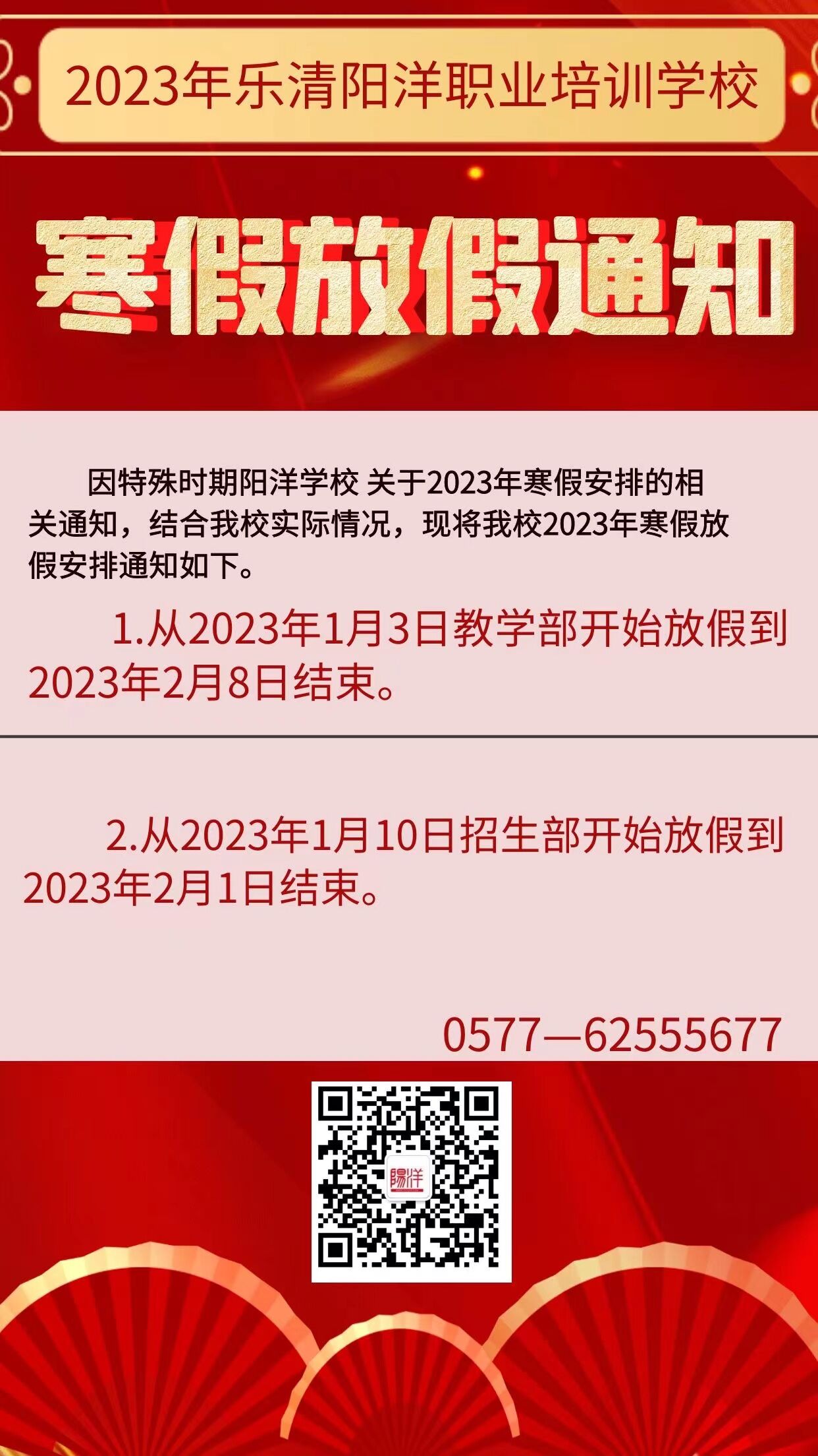 當前位置:樂清市陽洋職業(yè)技能培訓學校 » 學校新聞2023陽洋職業(yè)培訓學校放假通知。寒假放假通知#樂清哪里有學化妝發(fā)布時間:2023-1-3 14:54:30 瀏覽次數(shù):1953 |