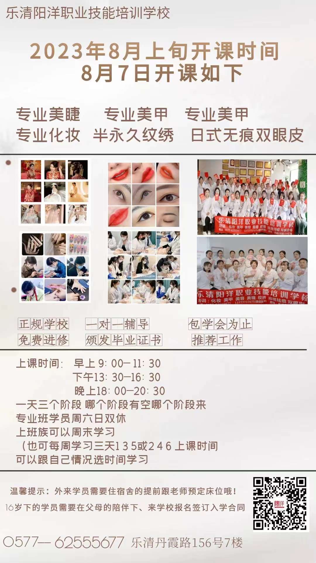 當前位置:樂清市陽洋職業(yè)技能培訓學校 » 學校新聞八月新班開課,八月七日起,快來加入我們吧發(fā)布時間:2023-8-2 19:01:43 瀏覽次數(shù):1950 |