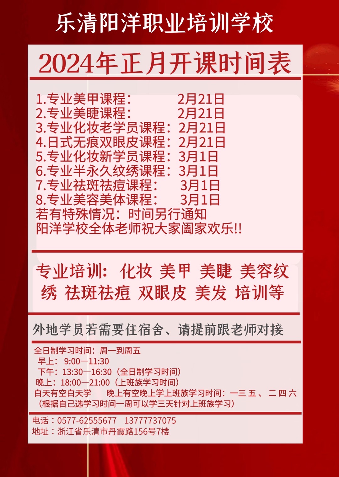 當(dāng)前位置:樂清市陽洋職業(yè)技能培訓(xùn)學(xué)校 » 學(xué)校新聞2024春季開課時間表 樂清哪里學(xué)化妝?發(fā)布時間:2024-1-20 16:14:15 瀏覽次數(shù):1949 |
