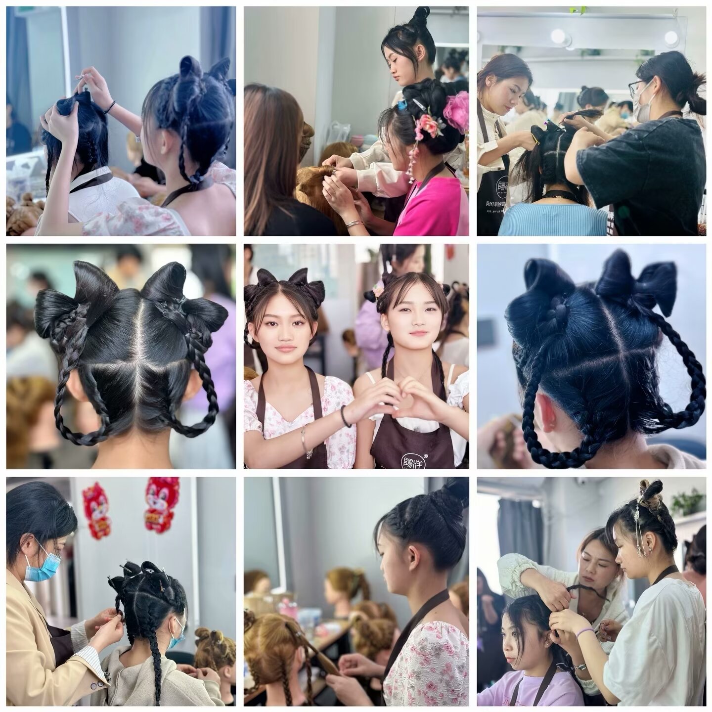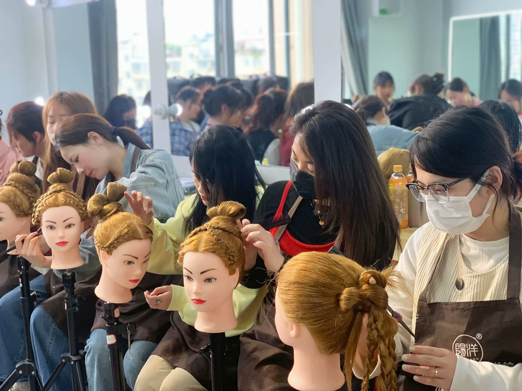 發(fā)型班的教學從簡單到難,老師帶領(lǐng)著大家一步步進步起來,從一開始簡單的三股辮到現(xiàn)在千變?nèi)f化的各種造型,成長肉眼可見,這邊是學習的好處。