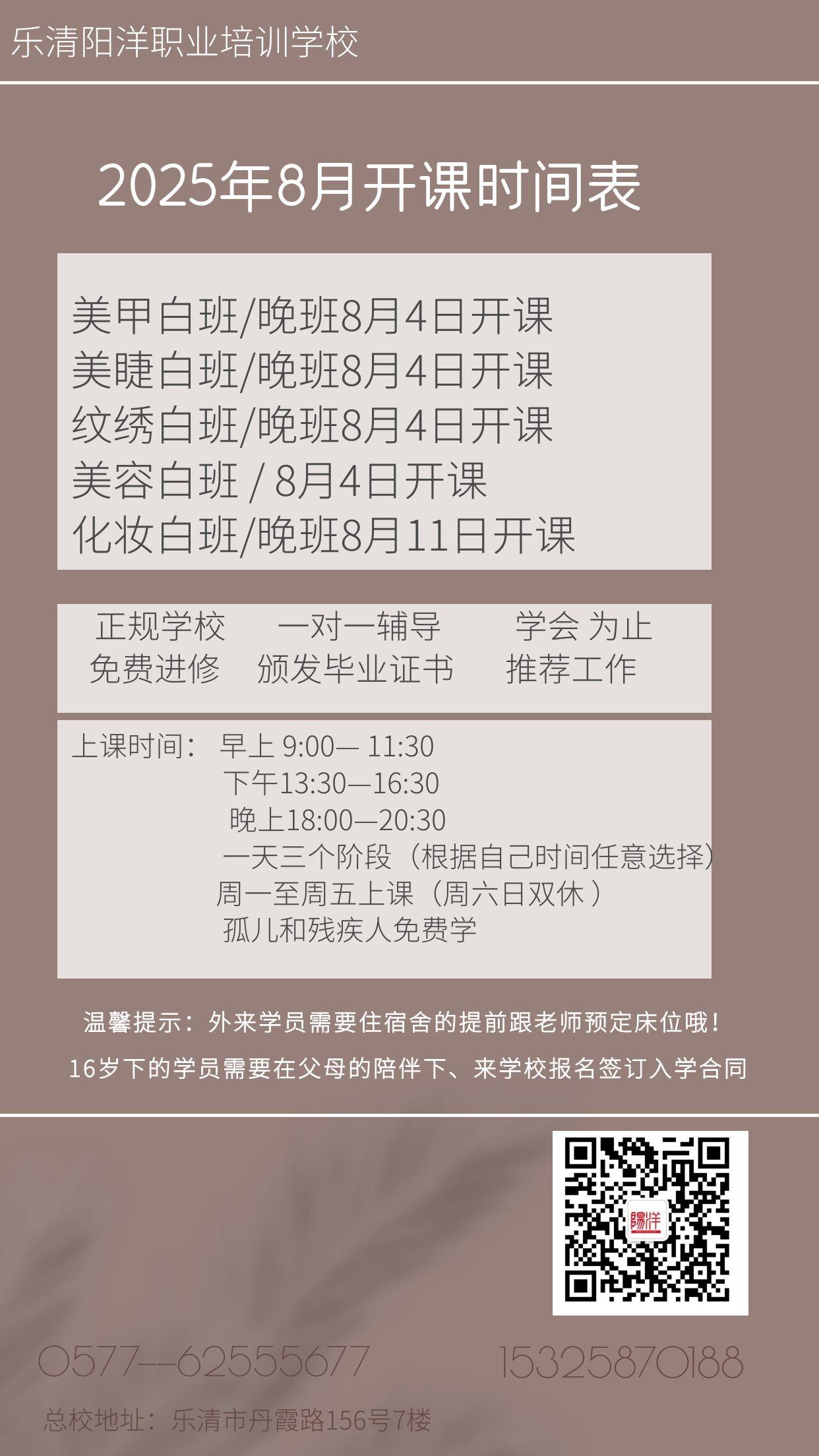 當(dāng)前位置:樂清市陽洋職業(yè)技能培訓(xùn)學(xué)校 » 學(xué)校新聞2025年8月開課時間表|樂清哪里有學(xué)化妝|柳市哪里有學(xué)化妝|虹橋哪里有學(xué)化妝|發(fā)布時間:2025-7-26 17:57:53 瀏覽次數(shù):1988 |